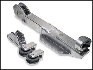 Dierks Sled Bow Roller System Long Arm with the line running down the right gunnel through 2 PB4 pulleys to the jam cleat on right side near seat. Length 15.75 inches. Mounting plate hole spacing 3” width, 4” length. Jam Cleat JC4 is 5” long 1 ½” wide, holes are 3 7/8” on center. Great for jet sleds, prams, John boats or any bow with a flat deck. if the gunnel has a lip then a spacer (wood will do) of whatever thickness is needed to raise the arm up to hang over the edge.